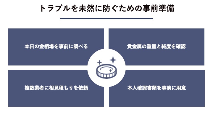 あらかじめ正しい知識と情報を持っていれば、悪徳業者の手口を未然に防ぐことができるため、ここでは貴金属を安全に売却するためにやっておくべき事前準備について解説します。ご自身の資産を守るために、ぜひ実践してください。